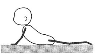 | Positief | Het kind ligt symmetrisch. Het kind heft gedurende minstens tien tellen het hoofd zo hoog op, dat het gelaat een hoek van 90 graden maakt met de ondergrond. De thorax komt daarbij los van de ondergrond; de nek blijft zichtbaar. Het kind steunt op de onderarmen of op de handen, de ellebogen zijn dus voor de schouderlijn. In het eerste geval zijn de armen gebogen, in het tweede geval zijn zij gestrekt, waarbij de thorax verder van de onderlaag loskomt. Het bekken rust plat op de ondergrond, de benen zijn overwegend gestrekt (zie figuur). |